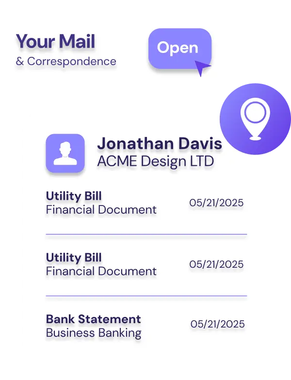 Establish your presence in the UK or USA with a verified business address. Protect your privacy, enhance your brand image, and manage all your mail — seamlessly, wherever you are.